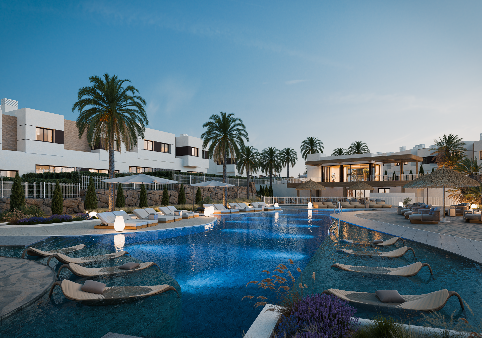Nestled along the sunny shores of Spain's Costa del Sol, Eden Resort & Club in Mijas offers an unrivaled blend of luxury, nature, and Mediterranean charm. This exclusive residential oasis is just minutes from La Cala de Mijas, about a 20-minute drive from Malaga Airport and 15 minutes from the center of Marbella. Surrounded by fragrant pine forests and overlooking the famous El Chaparral golf course, Eden Resort offers a peaceful getaway with easy access to the lively coastal life. The Costa del Sol is renowned for its world-class golf courses, and Eden Resort is ideally located to take full advantage. El Chaparral Golf Club, known for its stunning sea views and challenging course, is just a few kilometers away. Additionally, Mijas Golf Club and Santana Golf are easily accessible and offer a variety of courses suitable for all skill levels. The region boasts some of the most beautiful beaches in Spain. Playa El Chaparral, a 19-minute walk from Eden Resort, offers golden sand and clear waters. Nearby, La Cala de Mijas features Blue Flag beaches, perfect for sunbathing and water sports. When you enter this charming townhouse, a staircase leads you directly to the spacious living room, which opens into a fully equipped kitchen. From there, sliding doors open to a sunny terrace with a private garden—an ideal place to relax, sunbathe, or entertain guests. Enjoy a breathtaking panoramic view of the sea and surrounding mountains, while a dedicated barbecue area makes outdoor meals especially pleasant. On the same floor, you'll also find guest toilets and a laundry room. On the second floor, you’ll find the bedrooms. The master bedroom has its own en-suite bathroom, while the two other bedrooms share a modern and well-equipped bathroom—perfect for families or guests. On the lower level, the house provides direct access to the underground parking garage, with one private parking space included in the price. Eden Resort & Club is a community of semi-detached villas and luxury townhouses with three or four bedrooms. The complex features a state-of-the-art sports club, a spa, and a communal hall to meet all needs. Residents can enjoy facilities such as a fitness room, sauna area, tennis courts, and several swimming pools. The beach is a 5-minute walk from the sports club and a 12-minute walk from the townhouse.